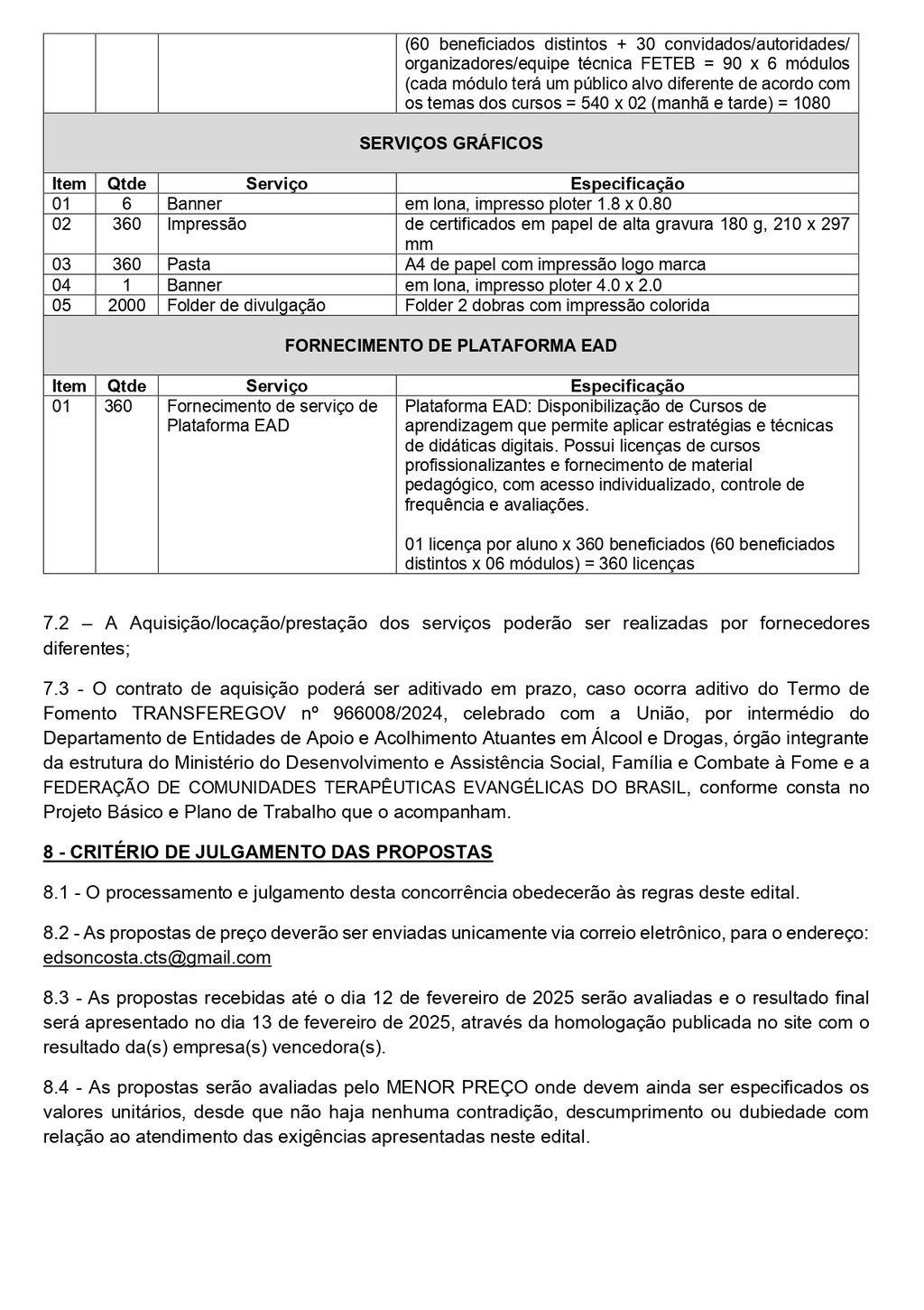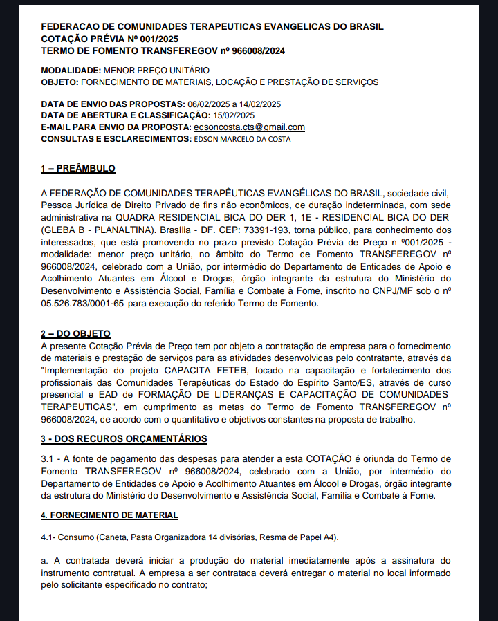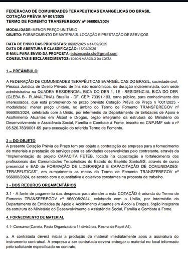 Edital 001/2025 - ES - Bens e Prestação de Serviços