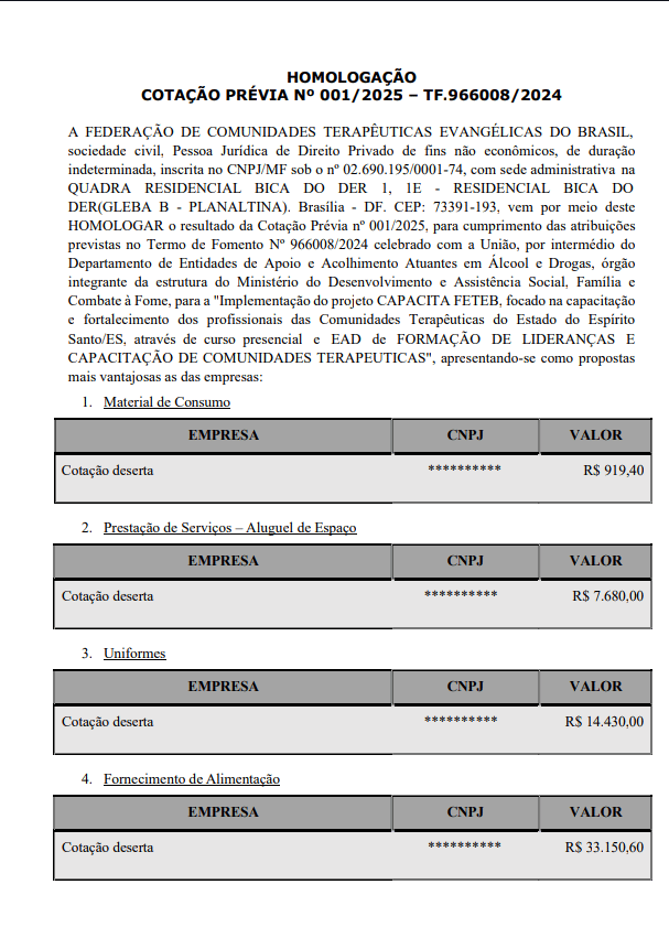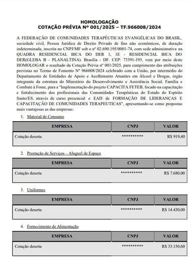 Homologação Edital 001/2025 ES - Bens e Prestação de Serviços