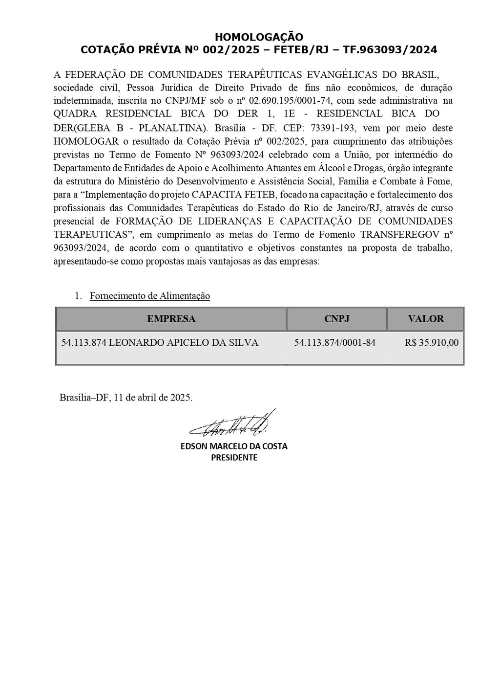 Edital 002/2025 - RJ - Bens e Prestação de Serviços