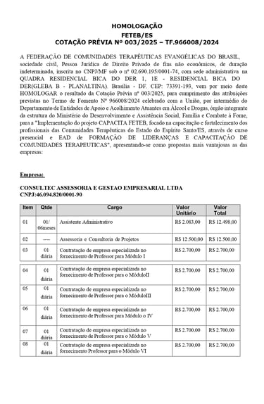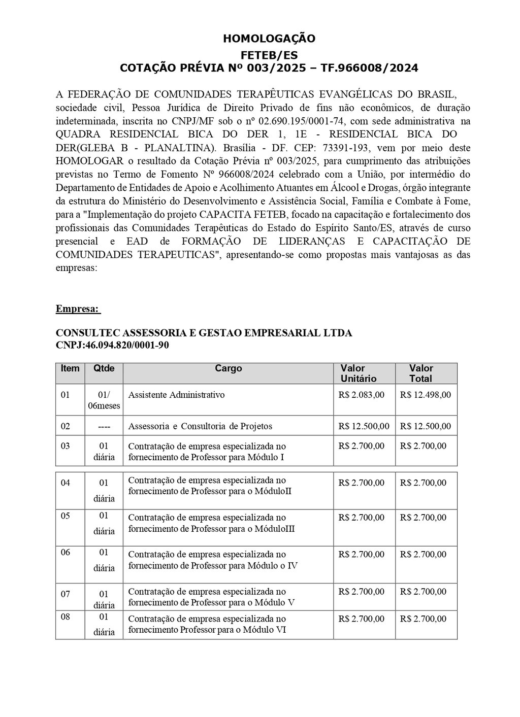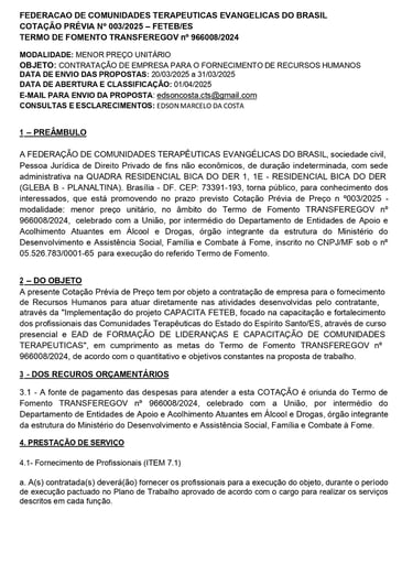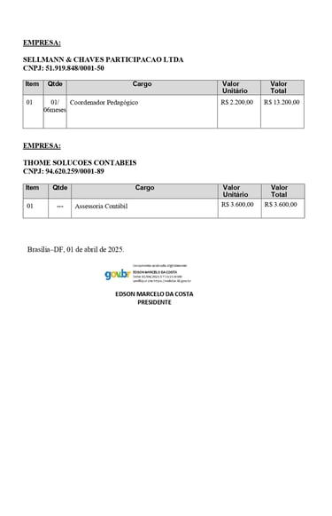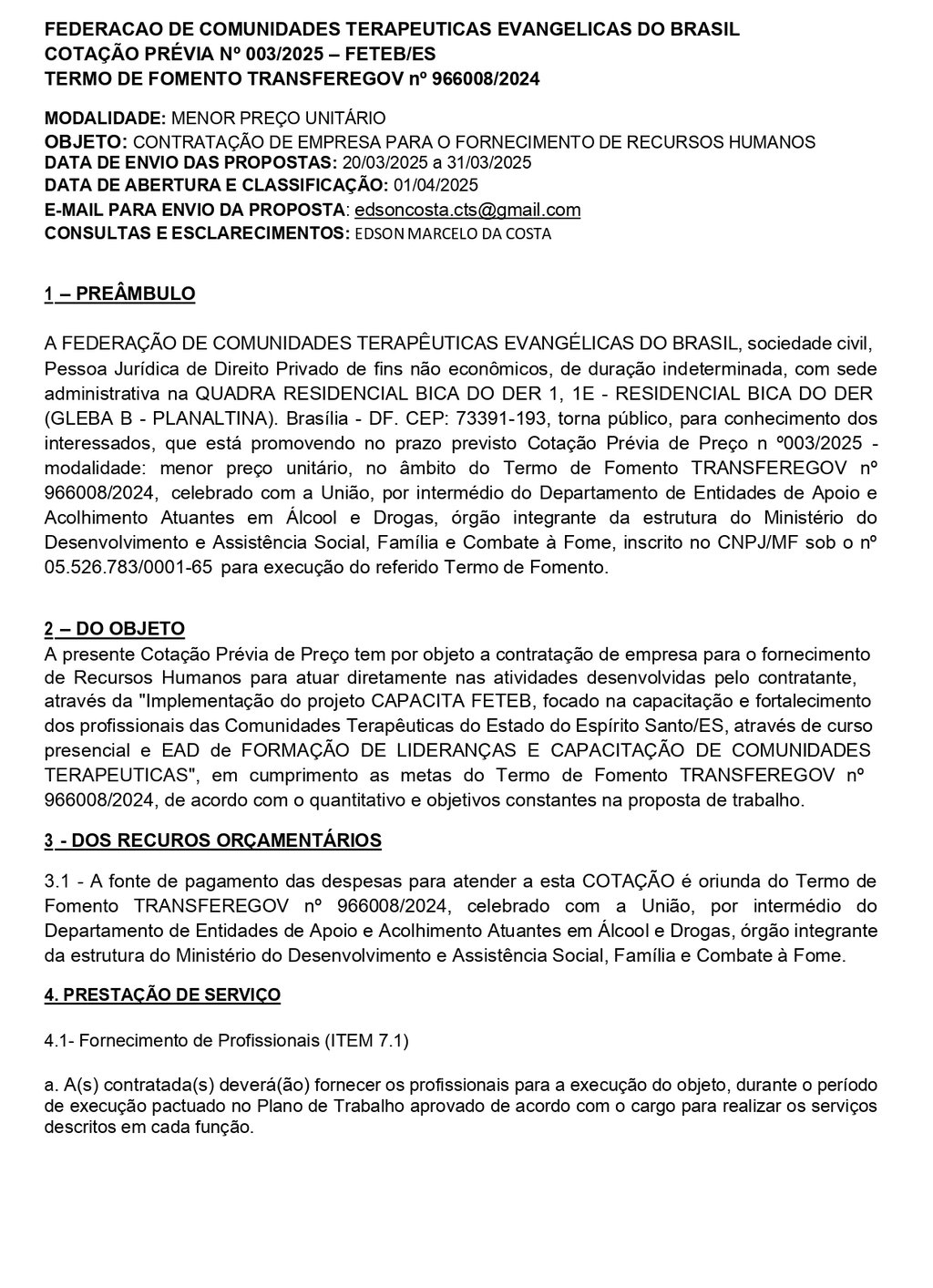 ENDEREÇO DA SEDE: BICA DO DER, GLEBA B 01, 1E, PLANALTINA/DF - CEP 73300-000