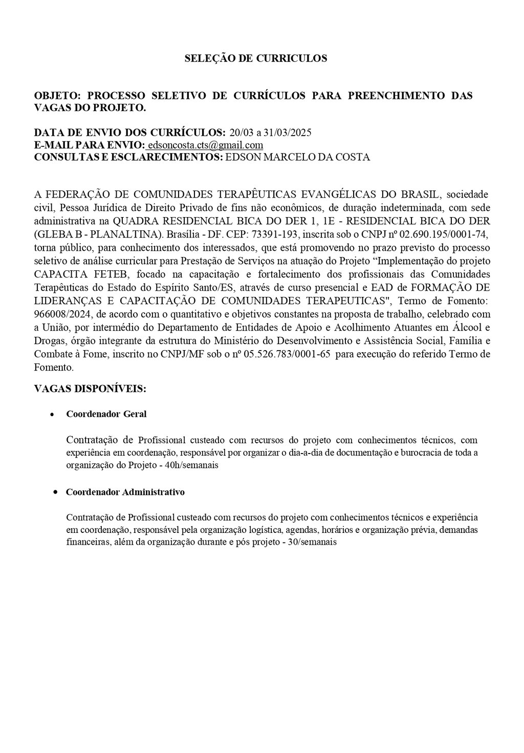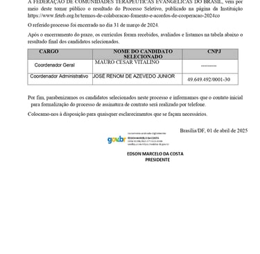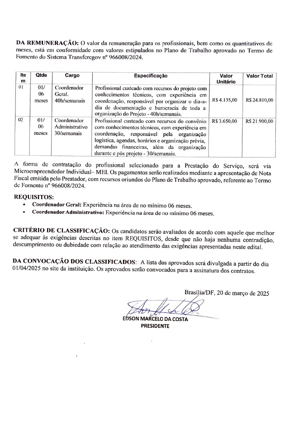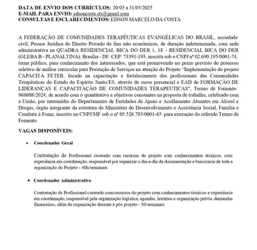 ENDEREÇO DA SEDE: BICA DO DER, GLEBA B 01, 1E, PLANALTINA/DF - CEP 73300-000