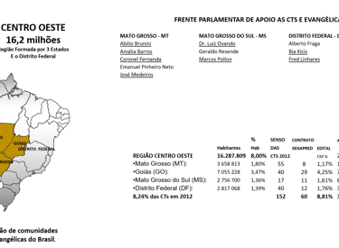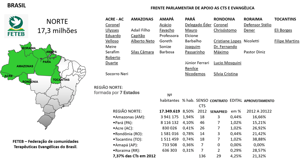 Apresentação de indicadores com base no Senso das CTs de 2012 e dos editais seguintes, para compra de vagas, pelo governo federal e seus respectivos aproveitamentos em percentuais, de acordo com a Região do Brasil