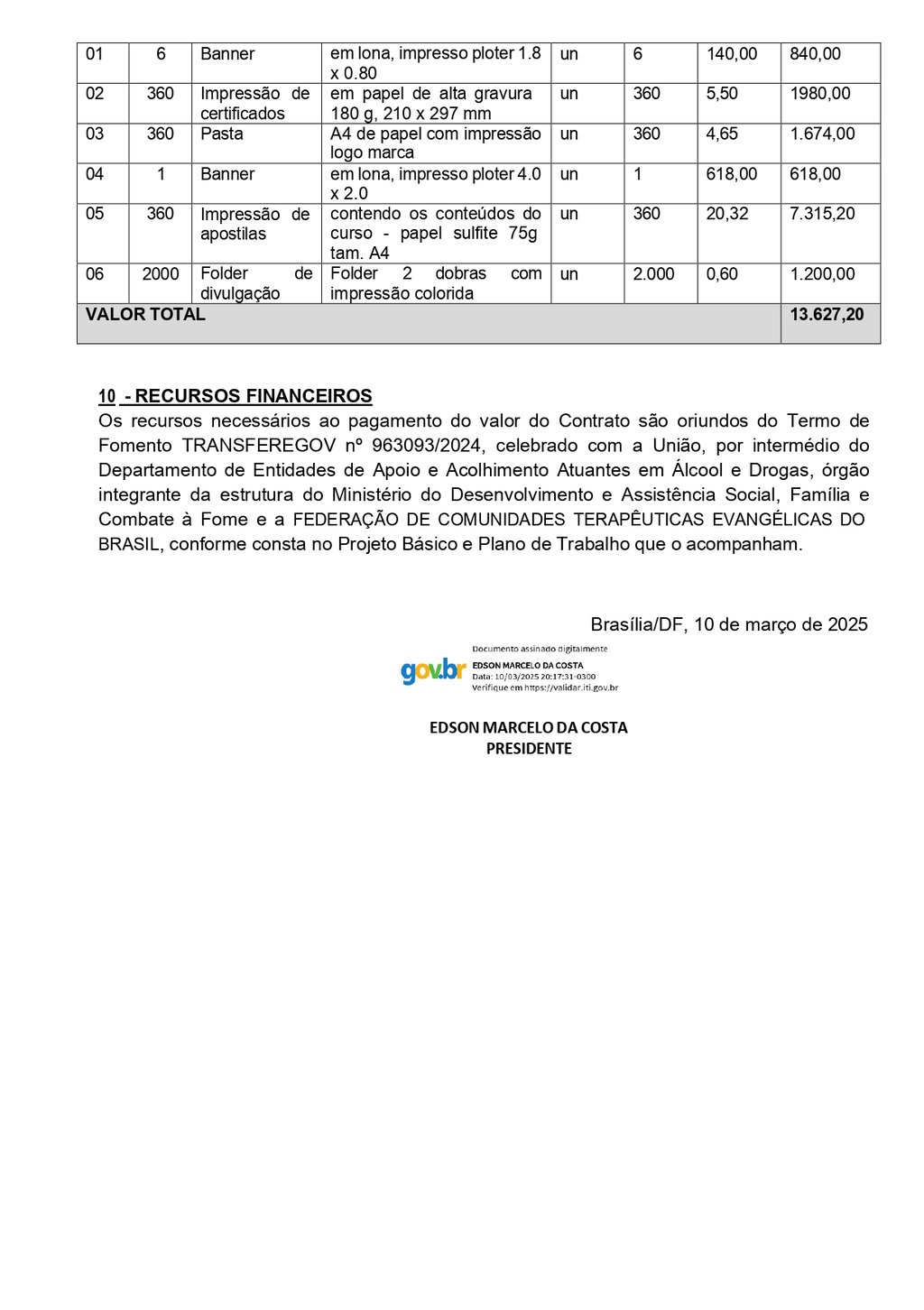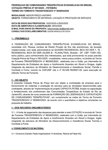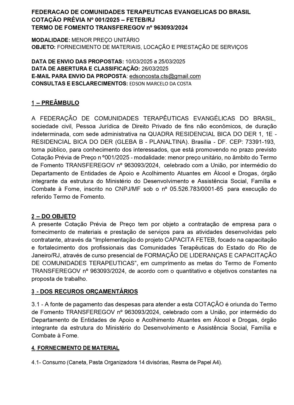 Edital 001/2025 - RJ - Bens e Prestação de Serviços